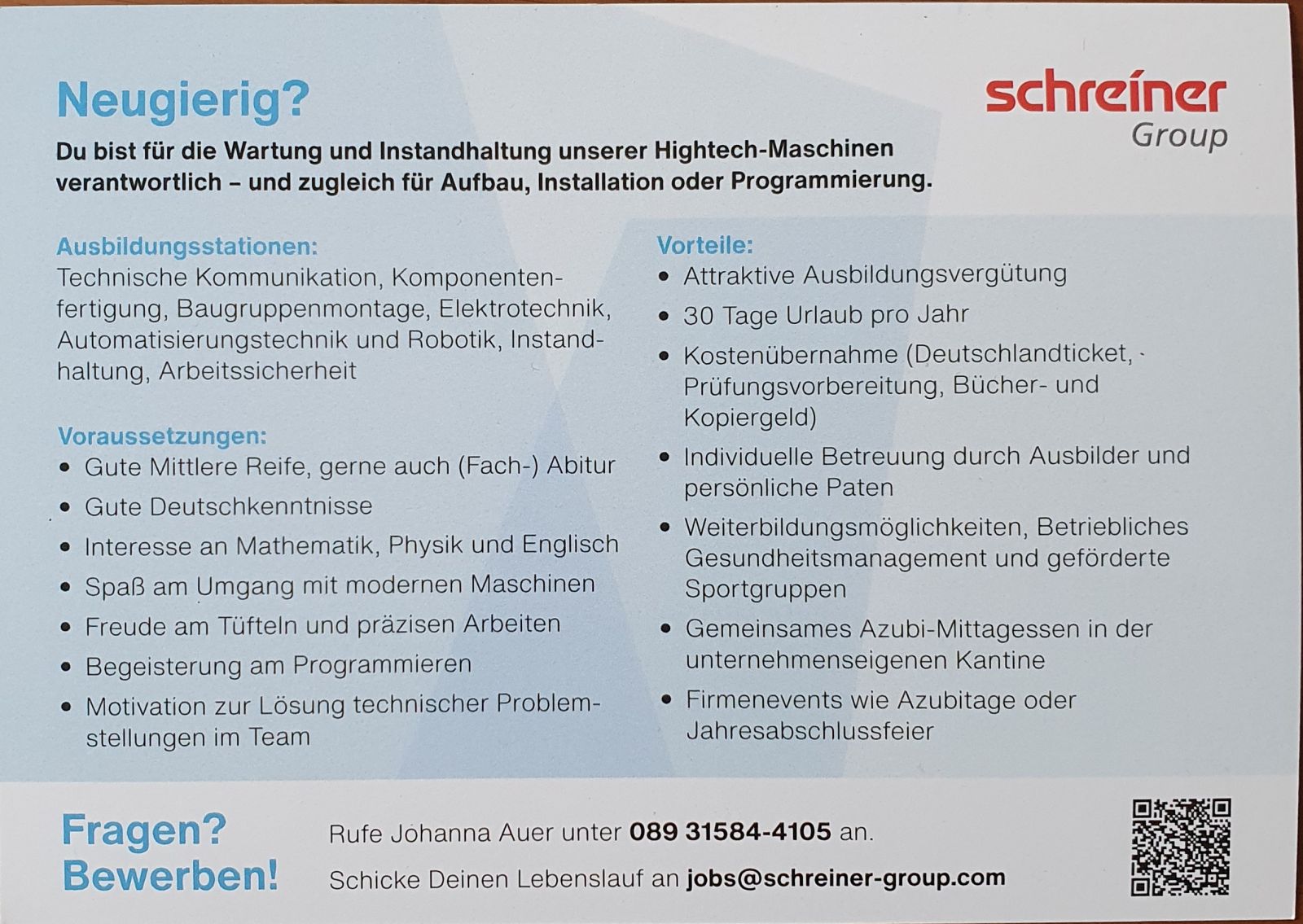 Die Schreiner Group ist ein international tätiges Familienunternehmen mit Hauptsitz in Oberschleißheim bei München, spezialisiert auf die Entwicklung und Produktion von Funktionsteilen, Kennzeichnungslösungen und selbstklebenden Spezialetiketten. Sie gliedert sich in folgende Bereiche